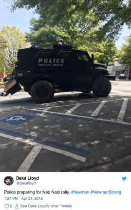 Newnan was helped by local police from surrounding counties, cities, and towns. Police from as far as Austell, Georgia and LaGrange, Georgia. It was reported that there were near to 700 officers at the rally for the Saturday.
