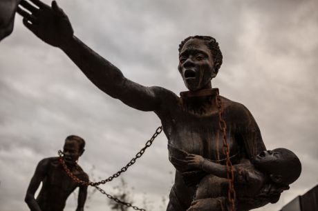 -Sculpture by Ghanaian artist Kwame Akoto Bamfo at the beginning of the National Memorial to Peace and Justice