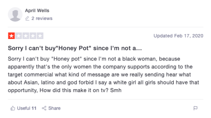 The Honey Pot Company, a black-woman owned feminine hygiene brand, saw an estimated 50% increase in sales after the launch of Target’s “Founders We Believe In” campaign. Oddly though, the spike in sales didn’t quite come from the advertisement itself, but rather an influx of negative reviews on TrustPilot. The one-star reviews claimed the brand was racist and excluded women of other races.
